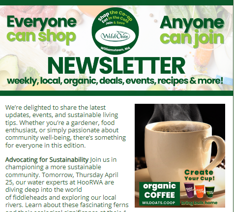 Location Wild Oats Market, 320 Main St, Williamstown, MA 01267 Open Daily 8 AM to 8 PM