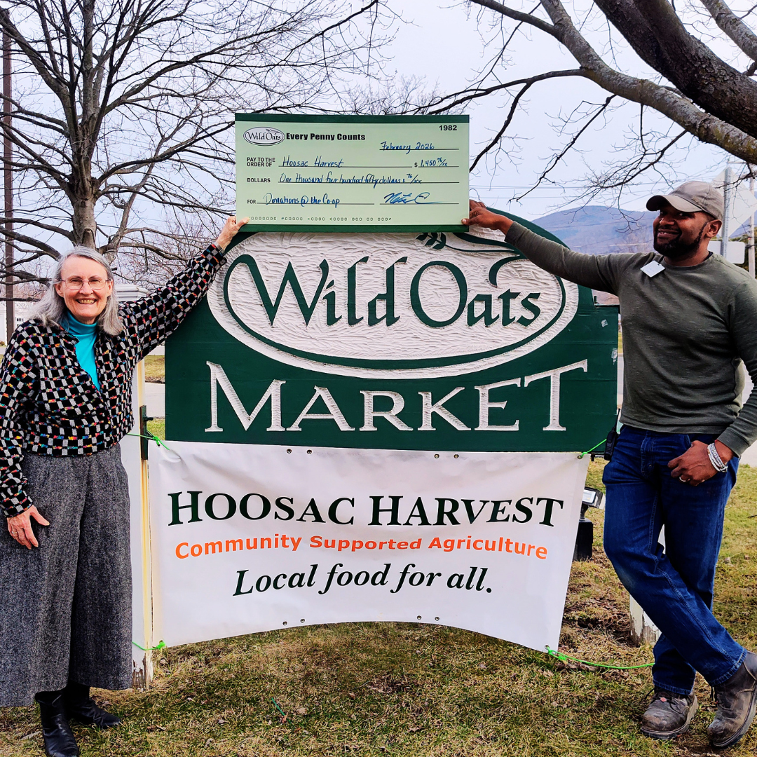 Today, Lee shared a heartfelt “thank you for your support!” as Netse, our General Manager of Wild Oats Market, presented Hoosac Harvest with a check for $1,450.76 - the total raised through our February Every Penny Counts program.
