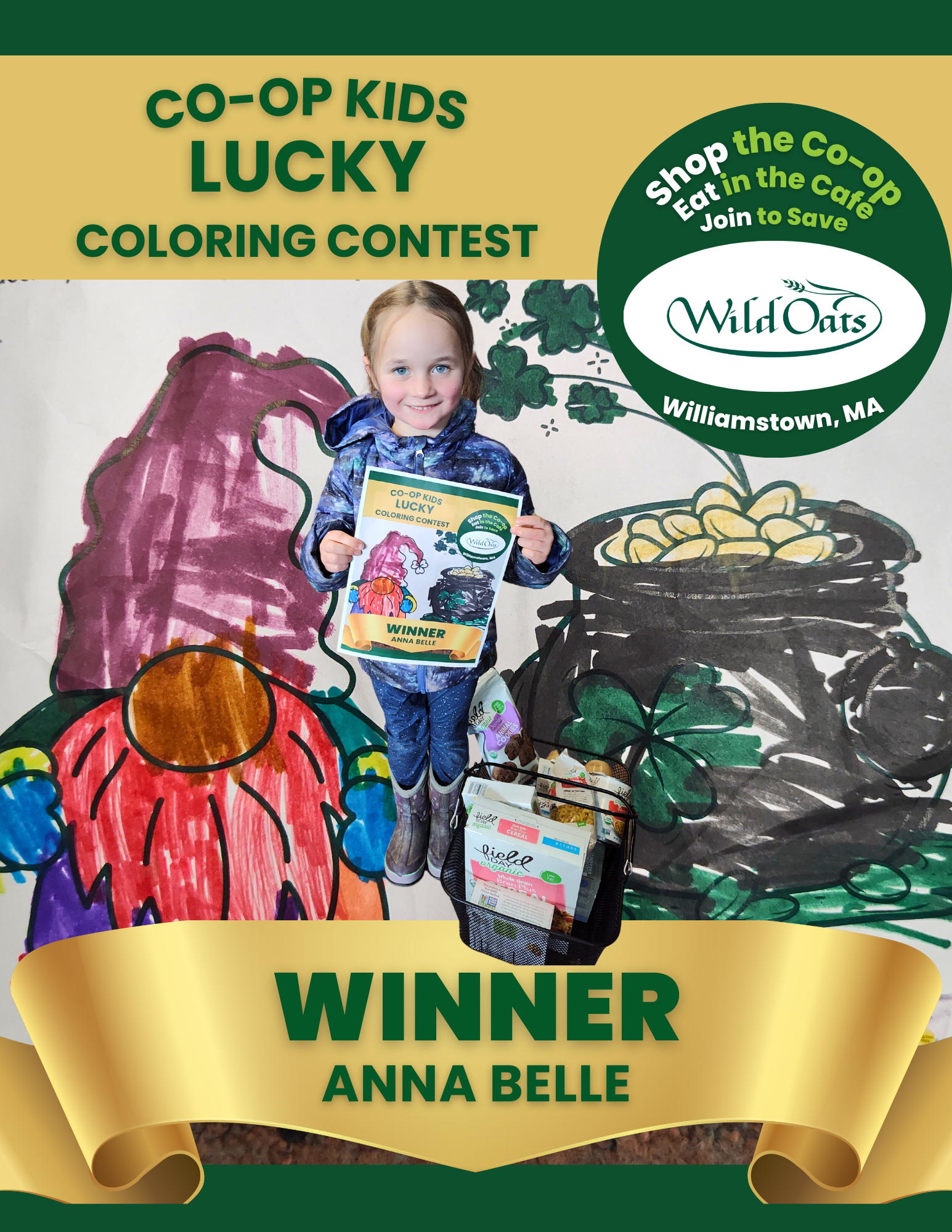 Congratulations to Annabelle, our talented winner of the March Co-op Kids Lucky Coloring Contest. Annabelle’s love for art was sparked by her amazing Art Teacher, Ms. Dirks, and her creativity truly shined in this contest.