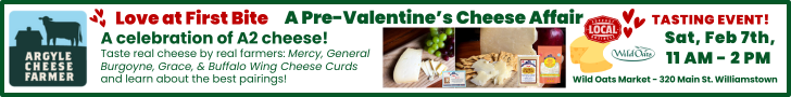 Join us for A Pre‑Valentine’s Cheese Affair on February 7th from 11 AM to 2 PM, where Argyle Cheese Farmer will showcase their award‑winning A2 cheeses, including Mercy Creamy Aged Cheddar, General Burgoyne Traditional NY Cheddar, Grace Gouda‑Style Cheese, and Buffalo Wing Cheese Curds. Meet their sales and marketing consultant, taste truly local cheese crafted by real farmers, and explore natural pairings like berries, chocolate, honey, and sparkling drinks for a love‑at‑first‑bite experience.
