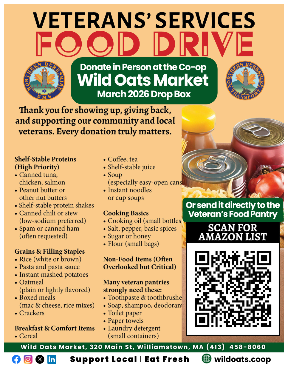By donating at Wild Oats Market, shoppers directly strengthen a local network of care - one that honors service with practical support and community compassion. Every item makes a meaningful difference for veterans right here in Northern Berkshire County.